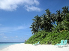 Madoogali ist eine sehr schöne kleine Malediveninsel mit nur 56 Bungalows, schönem Bewuchs mit vielen Palmen, teils schönem Strand und echtem Malediven-Flair. Es ist eine 100%ige Barfuss-Insel, auch wenn Restaurant und Bar gefliest sind. Die Bungis sind nicht neu, werden aber sukzessive renoviert und sind durchaus besser als ihr Ruf. Der beste Strand befindet sich im Osten der Insel. Da die Wasserflieger in einiger Entfernung zur Insel landen, ist dies nicht störend.